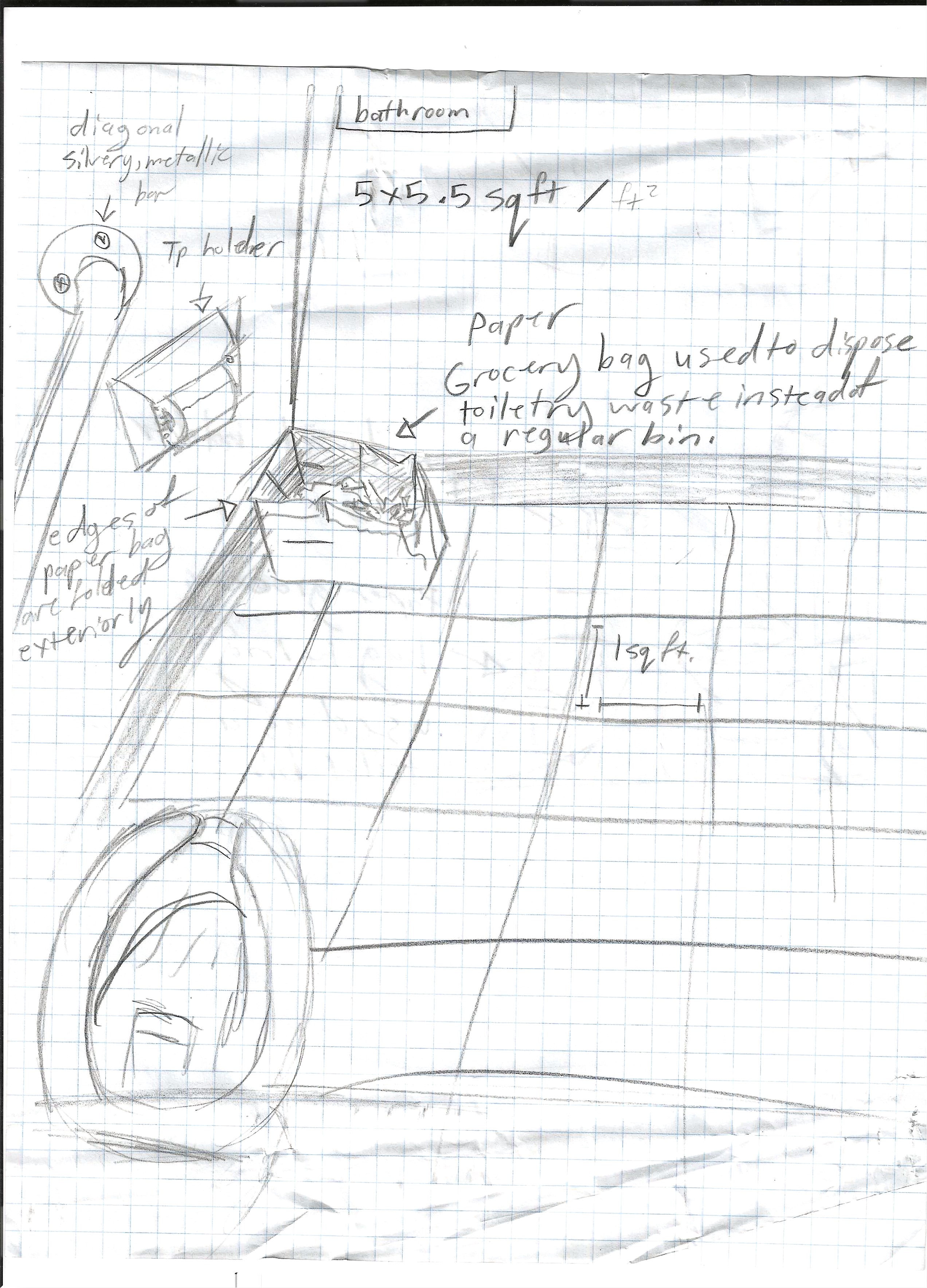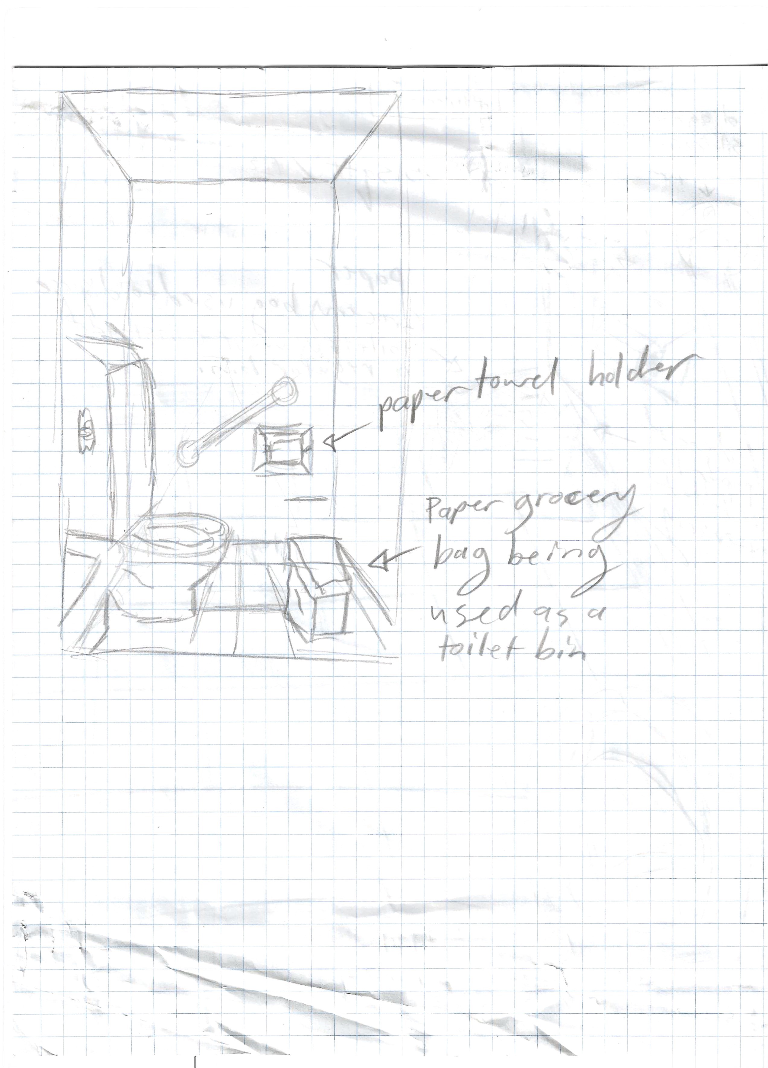 (Sketches of the restroom I had in my room while I was there)
